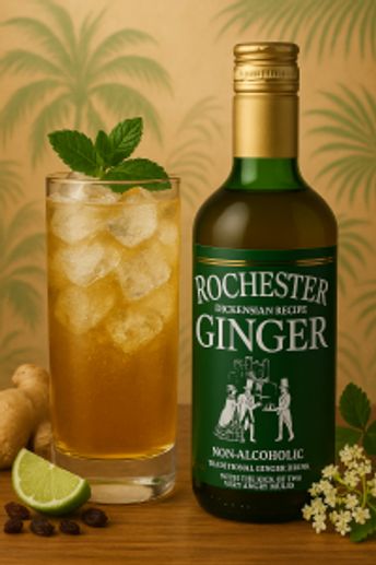 Fill the glass with ice, use equal parts of Rochester Ginger and sparkling water. Garnish with nothing but a slice of lime. Think slim and enjoy.