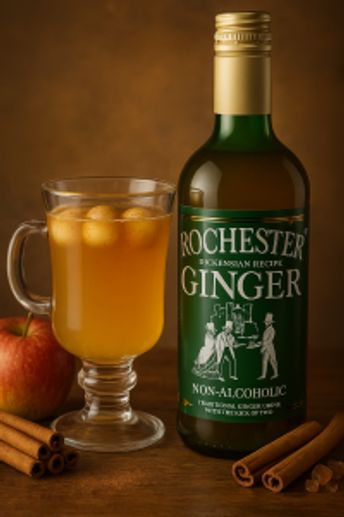 Mix 1 part Rochester Ginger with 2 parts of gently warmed apple juice. Make apple spheres with a melon baller and roll them in cinnamon and brown sugar before floating them in your glass.