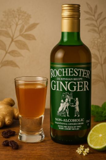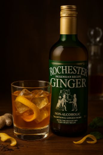 Fill the glass with large ice cubes, use equal parts of Rochester Ginger and Scotch whisky. Garnish with a twist of lemon rind.