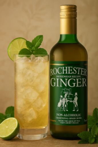 Fill the glass with ice, then add equal parts of Rochester Ginger and tonic water. Garnish with mint leaves.
