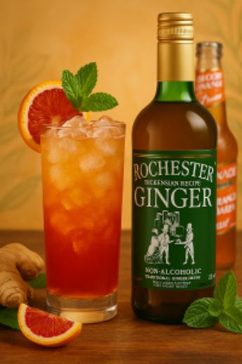 Half fill a hi-ball glass with crushed ice, add 1 part Grenadine, 2 parts Rochester Ginger, and top up with Blood Orange and Mandarin pressé (or similar). Garnish with a disk of blood orange.
